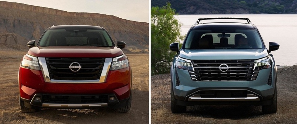 Nissan Pathfinder получил новый передний бампер с «жабрами». Также заменили радиаторную решетку: обрамляющей массивной хромированной V-образной вставки больше нет, при этом на решетке все же красуются блестящие декоративные элементы. У богатых исполнений рейлинги на крыше из серебристых стали черными. Топ-версии еще достались 20-дюймовые колеса нового дизайна (у остальных версий 18-дюймовые диски). Палитру цветов кузова пополнил оттенок Baltic Teal.