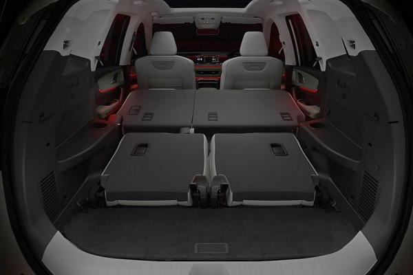 Внутри Mahindra XEV 9S также скопировал родственное кросс-купе, не считая, конечно, третьего ряда кресел. Новинке достались аналогичные передняя панель, двухспицевый руль с сенсорными кнопками, трехэкранное табло (идет уже в базе) и сенсорная же полоска под центральными дефлекторами обдува. Пространства за галеркой почти нет, а объем багажника со сложенными спинками третьего ряда составляет 527 литров. К слову, под крышкой капота есть дополнительный отсек.