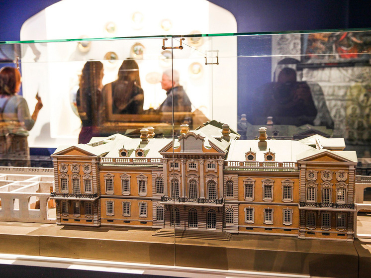 Едва войдя в пространство, мы словно садимся в суперскорый поезд Москва — Царское Село и попадаем в атмосферу императорского жилища, вспоминаем историю этого места. Представить себя гостем резиденции позволяет модель большого Царскосельского дворца, работа архитектора Квасова. Вещь уникальная: единственная архитектурная модель, сохранившаяся из более чем сотни макетов различных зданий XVIII–XX в., числившихся в коллекции «Царского Села» до Великой Отечественной войны.