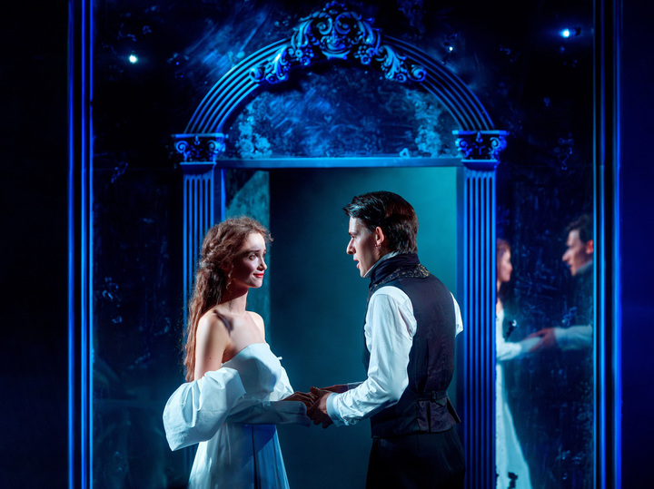 Для артистов «Покровка.Театр» это первая совместная работа с новым худруком. Материал выбрали, «следуя заветам основателя театра» Сергея Арцибашева, который замыслил театр как классический, куда можно привести школьников и показать им шедевры мировой и отечественной драматургии, хотя и не без современных решений. Например, настенные зеркала — цифровые экраны, ставшие частью декораций, — дополненная реальность, на которой то детали интерьера старинной усадьбы, то гроза, то привидения. Cценографическое решение к тому же визуально расширяет камерное, интимное пространство крохотного зала.