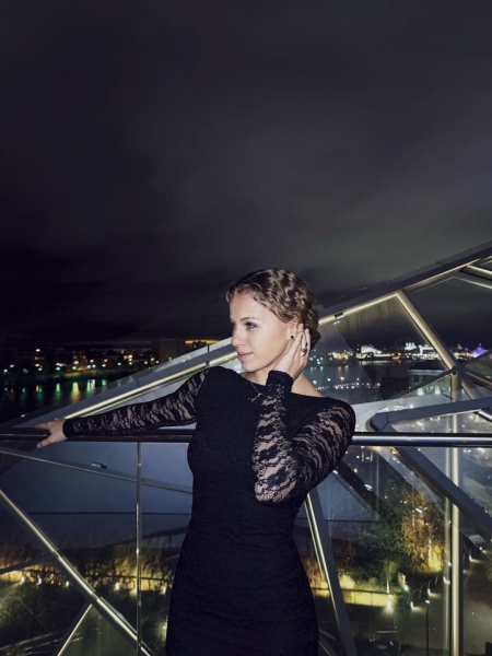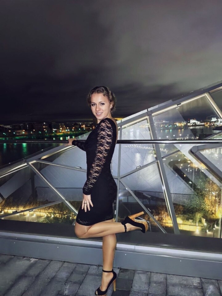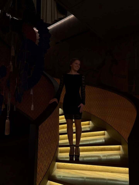 Кансо принарядилась для торжества, надев наряд, выгодно подчеркнувший ее женственную фигуру с красивыми формами. Елизавета блистала на мероприятии в черном узком мини-платье с кружевными рукавами и кружевной вставкой по подолу и туфлях на высоком каблуке.