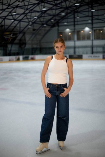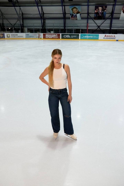 Трусова сфотографировалась на катке. На тренировку спортсменка пришла в синих широких джинсах и белой майке. Александра сделала легкий макияж и собрала длинные волосы в низкий хвост.