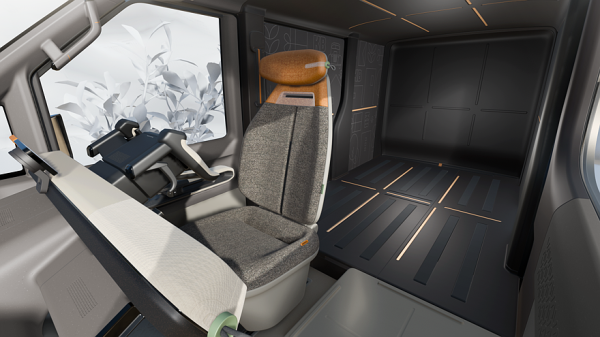 В салоне на передней панели есть ряд физических кнопок, перед водителем расположен штурвал вместо привычного рулевого колеса. Кемпер оснастили раскладной палаткой на крыше, до неё можно добраться по лестнице на корме, Ещё предусмотрены дополнительный выдвигающийся вбок тент, переносной стол и пара складных стульев. Кемперу достались внедорожные шины, «ландшафтный» рисунок на кузове и дополнительная светотехника на передней кромке крыши.