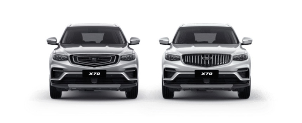 Главная примета рестайлинга — новая радиаторная решетка с вертикальными прутьями вместо прежнего концентрического рисунка. Такой «гриль» был у китайской модели Geely Boyue после рестайлинга 2022 года, но если ей полагался еще и новый бампер, то у белорусского кроссовера Belgee X70 он остался прежним. Также у «семидесятки» сократилось количество «хромированных» деталей на кузове: их частично заменили серебристыми. А еще всем версиям теперь полагаются базовые 17-дюймовые колеса, тогда как прежде у большинства вариантов были 18-дюймовые.