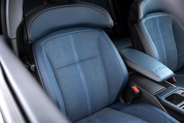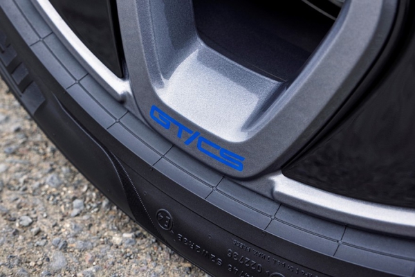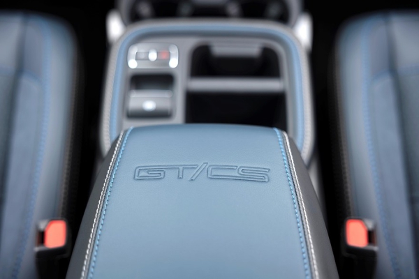 Mustang Mach-E California Special окрашен в новый бело-голубой цвет Rave Blue, оттенок которого меняется в зависимости от освещения и угла падающего света. Эмблемы и шильдики выполнены в насыщенном синем цвете, на капот наклеена широкая серая наклейка с синей надписью California Special, на 20-дюймовые колёсные диски нанесены надписи GT/CS. Салон получил обширные вставки синего цвета со светоотражающими полосками и двухцветную (белый и голубой) прострочку.