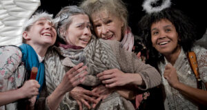 Старушки (Ким Дарья Кошева и Ирина Богданова) и их Ангелы-хранители (Анна Богдан и Виктория Закария). Фото — Дмитрия Хованского. Предоставлены пресс-службой Театра Эрмитаж