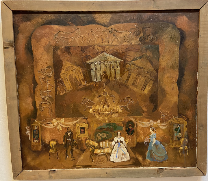Особый раздел выставки, посвящен театральному творчеству художницы. Интереснейшие эскизы к учебным постановкам в театрально-декорационной мастерской МГАХИ им. В.И. Сурикова, в котором Раиса Иванова трудилась почти полвека.