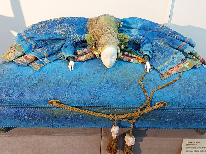 «Хранительница сновидений» — небольшой сундучок-коробка для хранения мелких предметов. На его крышке лежит девушка, охватывая сундук руками. Она оберегает сокровища. Сундучки покрупнее традиционно использовались бурятами как столы и кровати в юртах. В них хранили ценные предметы.