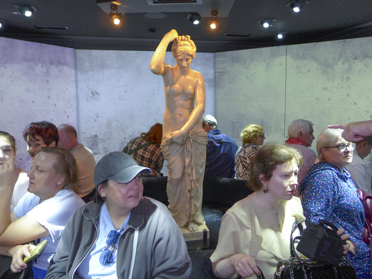 В России в театрах действуют единичные музеи, но такого, как сделали вахтанговцы, нет точно: здесь нет живого экскурсовода, команды дает ИИ, а экспонаты говорят голосами известных артистов. И это осознаешь, когда из зала, где персоналии раскрываются через предметы, оказываешься в помещении с вращающимся круглым диваном. На него рассаживают зрителей (их всегда будет строго по 13 в каждой группе посетителей).