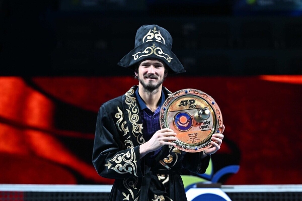 Перед получением золотого трофея Даниил примерил на себя казахстанский национальный костюм, а также тематический головной убор. Также теннисист обратил внимание на интересную статистику своих выигранных турниров: