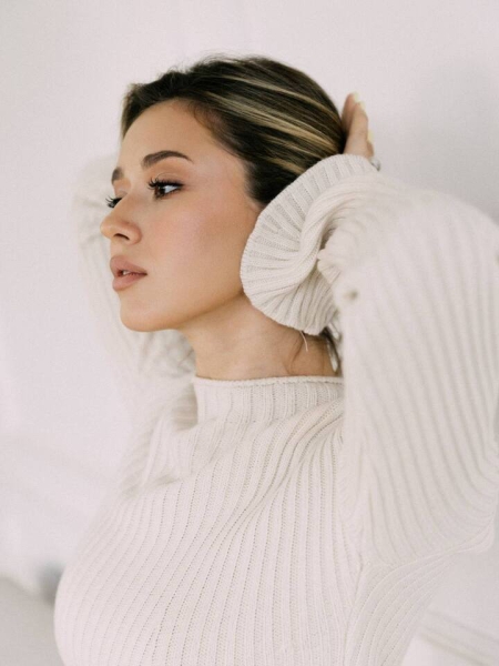 Съемка прошла в студии, где Камила позировала, забравшись с босыми ногами на уютный диван. Валиева надела вязаное мини-платье с длинными рукавами молочного оттенка. Фигуристке нанесли красивый умеренный макияж, волосы уложили легкими волнами.